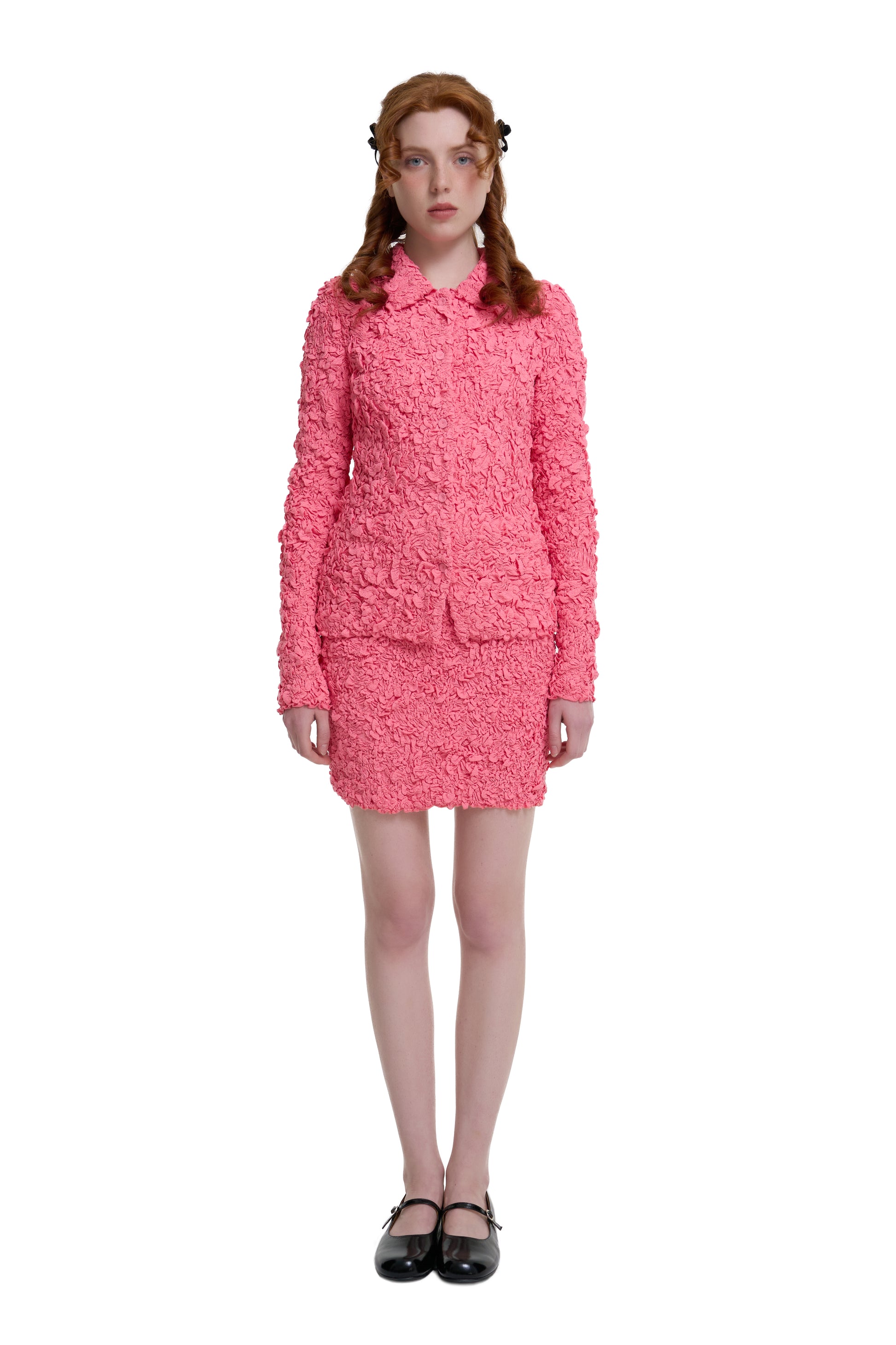 Coral Pink Smocked Mini Skirt