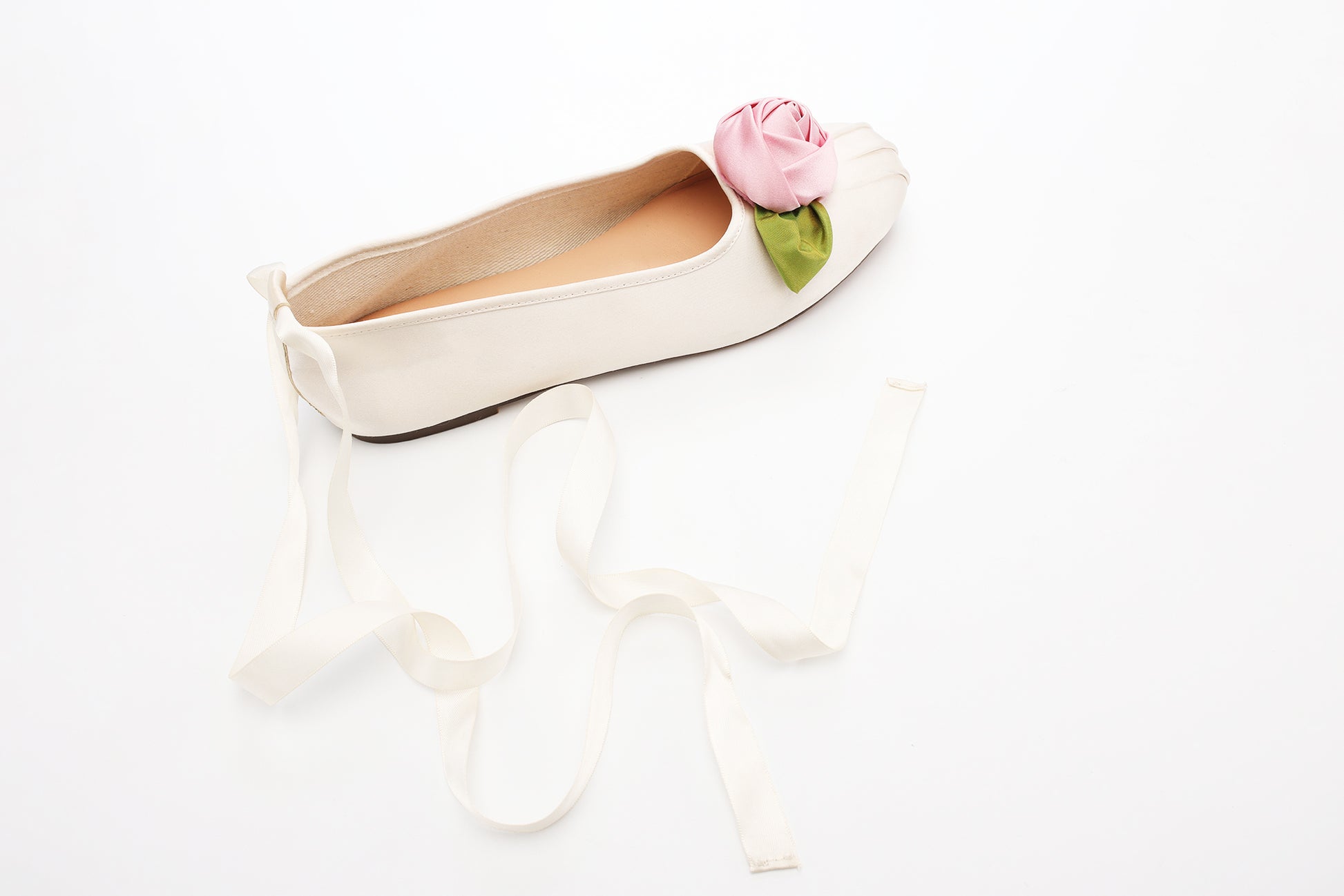 Ivory Satin Rose Ballerina Flats